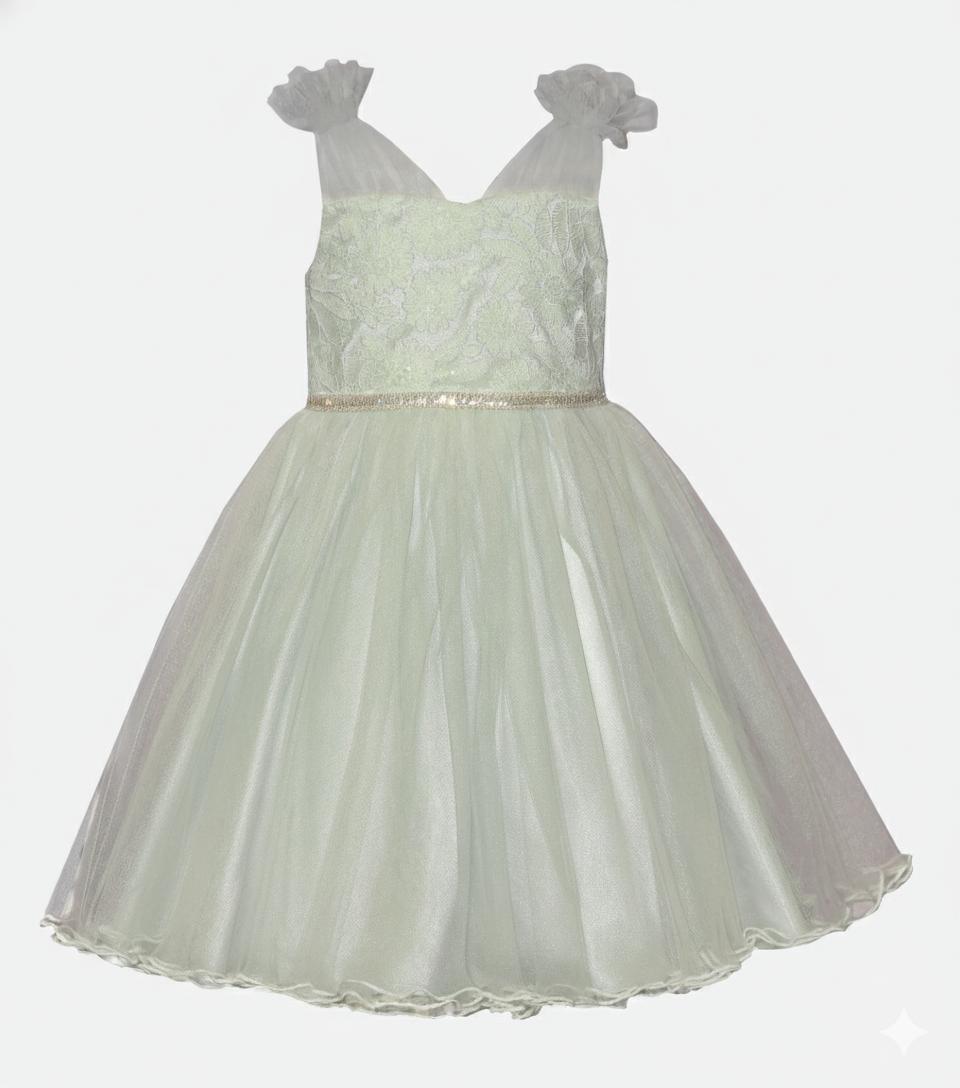 Beautiful design with sweet details like an embroidered bodice, sparkle trim at the waist and gathered tie shoulders make the perfect dress for your little one! Matching panty included for infant and newborn sizes.